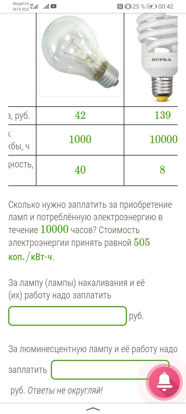 На 10000 ч понадобится 1 лампа, надо заплатить: