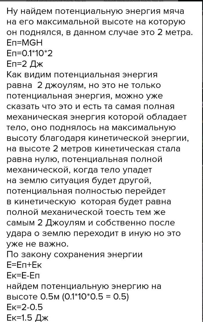 была равна кинетическая энергия мяча на этой высоте? Сопротивлением воздуха