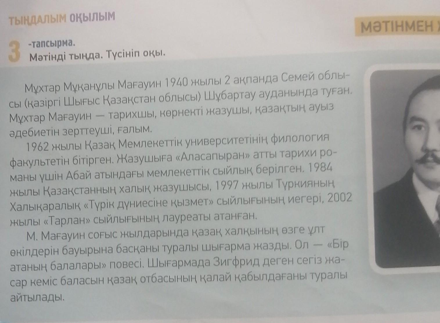 ЖАЗЫЛЫМ 8 тапсырма. Мұхтар Мағауин туралы қосымша мәлімет жина. Диаграмманын толтыр Талаптар: 1. Көлемі - 6 сөйлем; 2. Сын есімді жиі пайдалан; 3. міндетті түрде жаңа сөздерді қолдан, Мурстар Мағауин