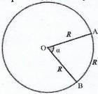 Мадияр отрезал от круглого пирога кусок как показано на рисунке. Радиус пирога R, длина дуги АВ=R. Чему равен угол а?