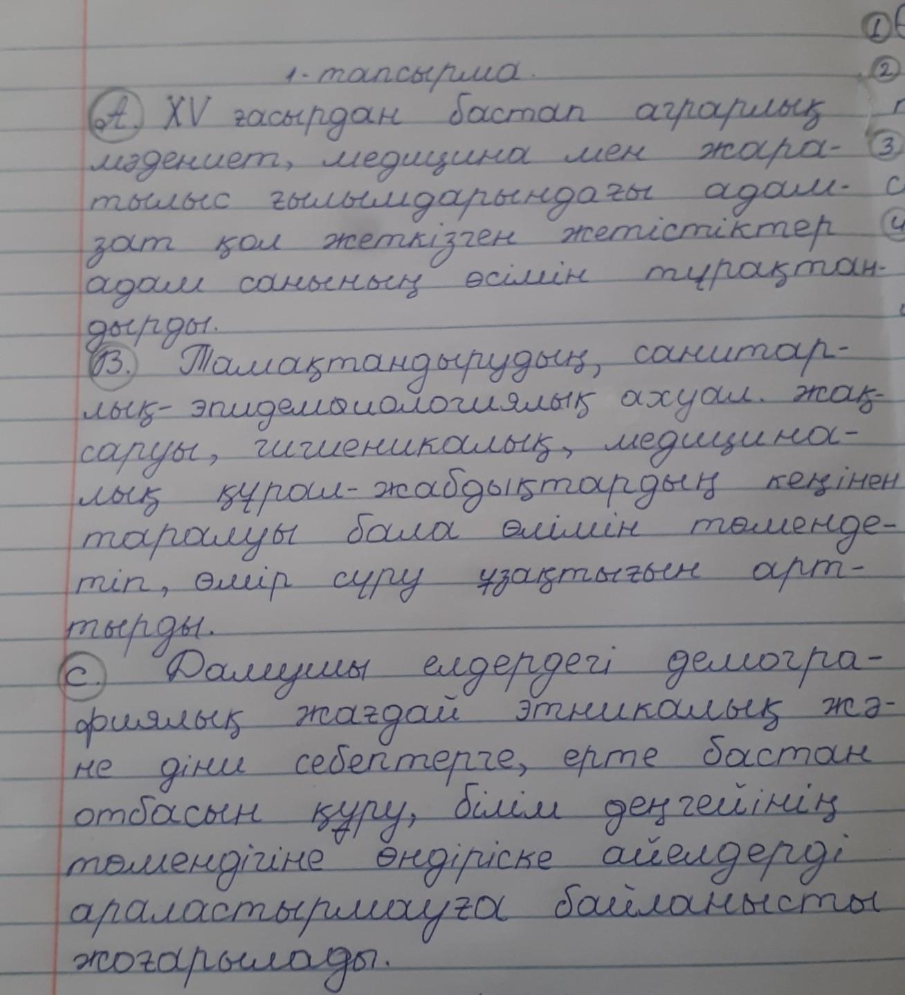 A. XV ғасырдан бастап аграрлық мәдениет, медицина мен жаратылыс Гылымдарындагы адамзат қол жеткізген адам санының өсімін тұрақтандырды. В. Тамақтанудың, санитарлық-эпидемиологиялық жақсаруы, гигиеналық, медициналық құрал-жабдықтардың кеңінен таралуы бала