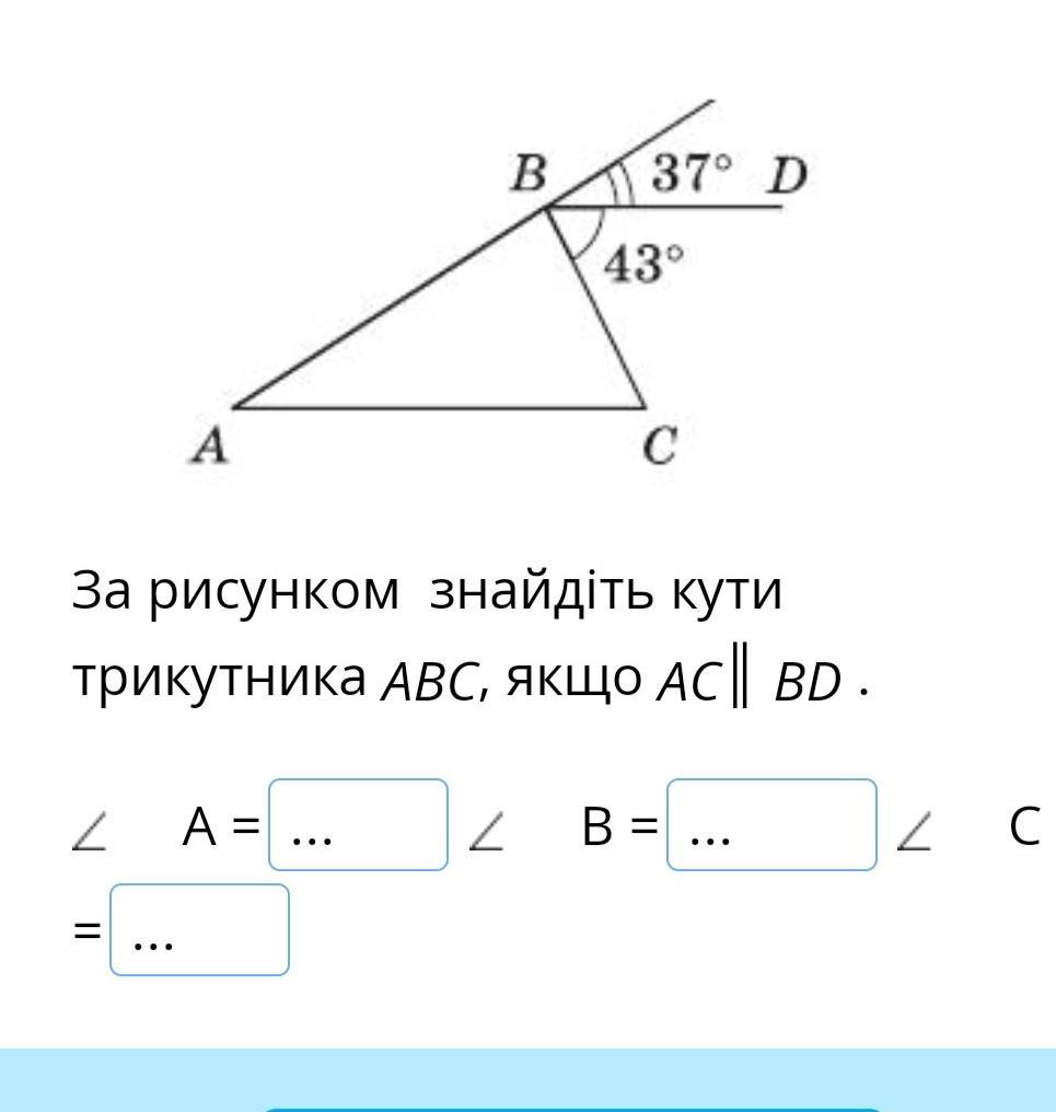 угол B = 180 - (37 + 43) = 100 градусов (смежные углы)