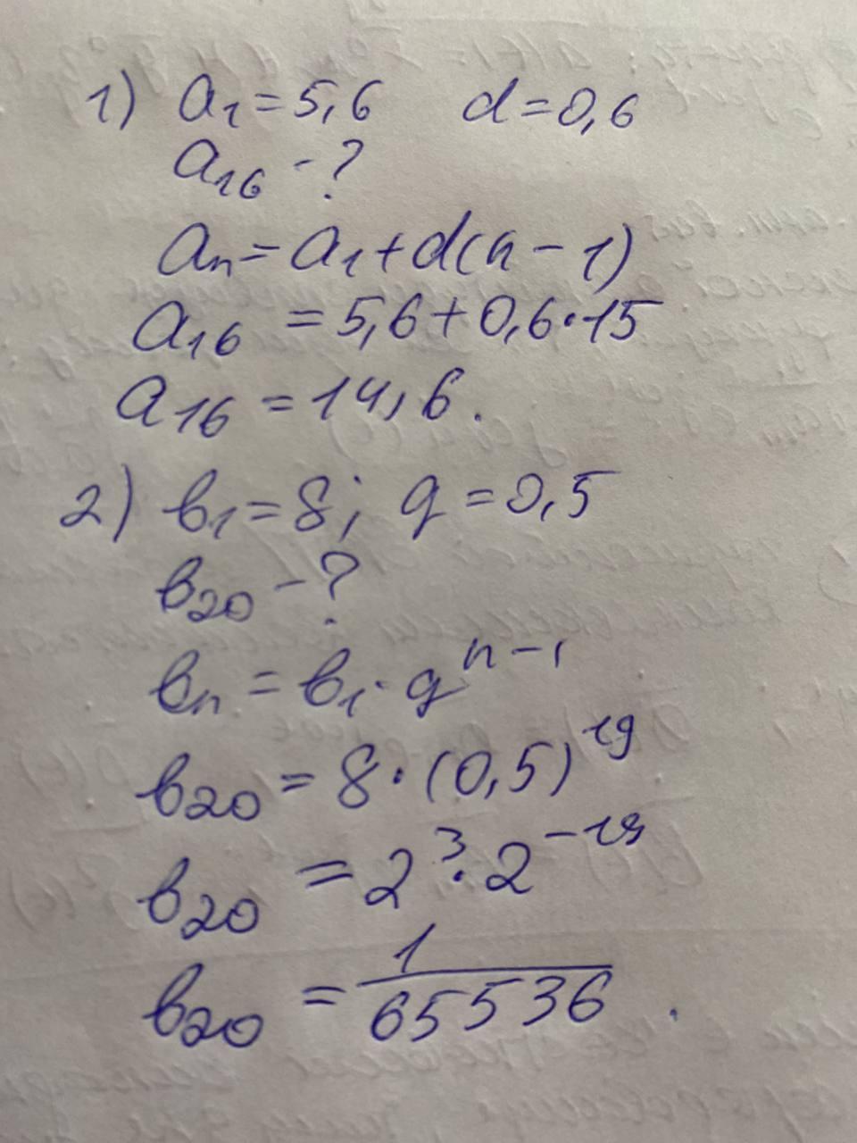 1.Найдите 16й член арифметической прогрессии, если a¹=5,6; d=0,6