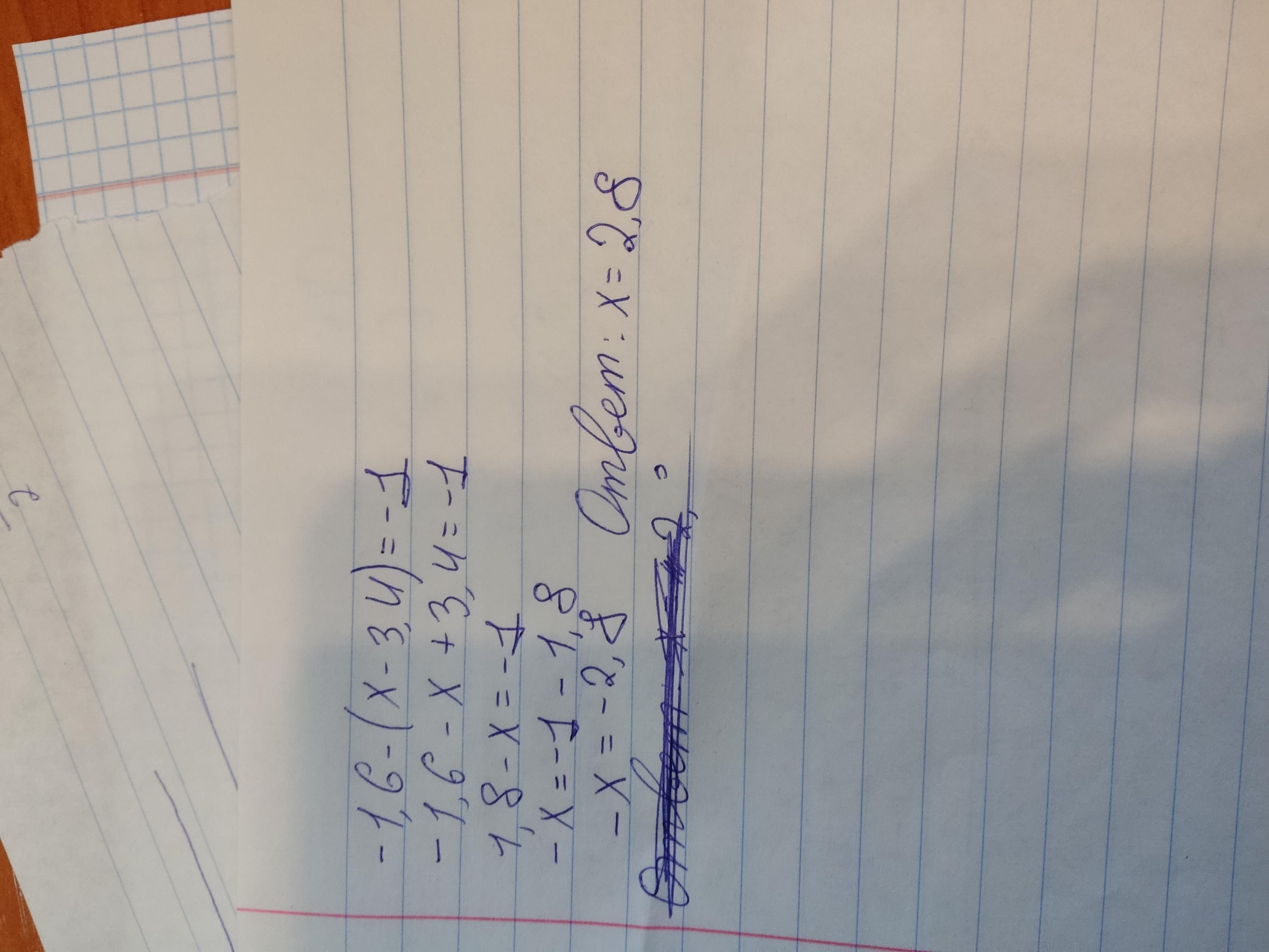 реши уравнение упростив сначала выражение в его левой части -1,6-(х-3,4)=-1