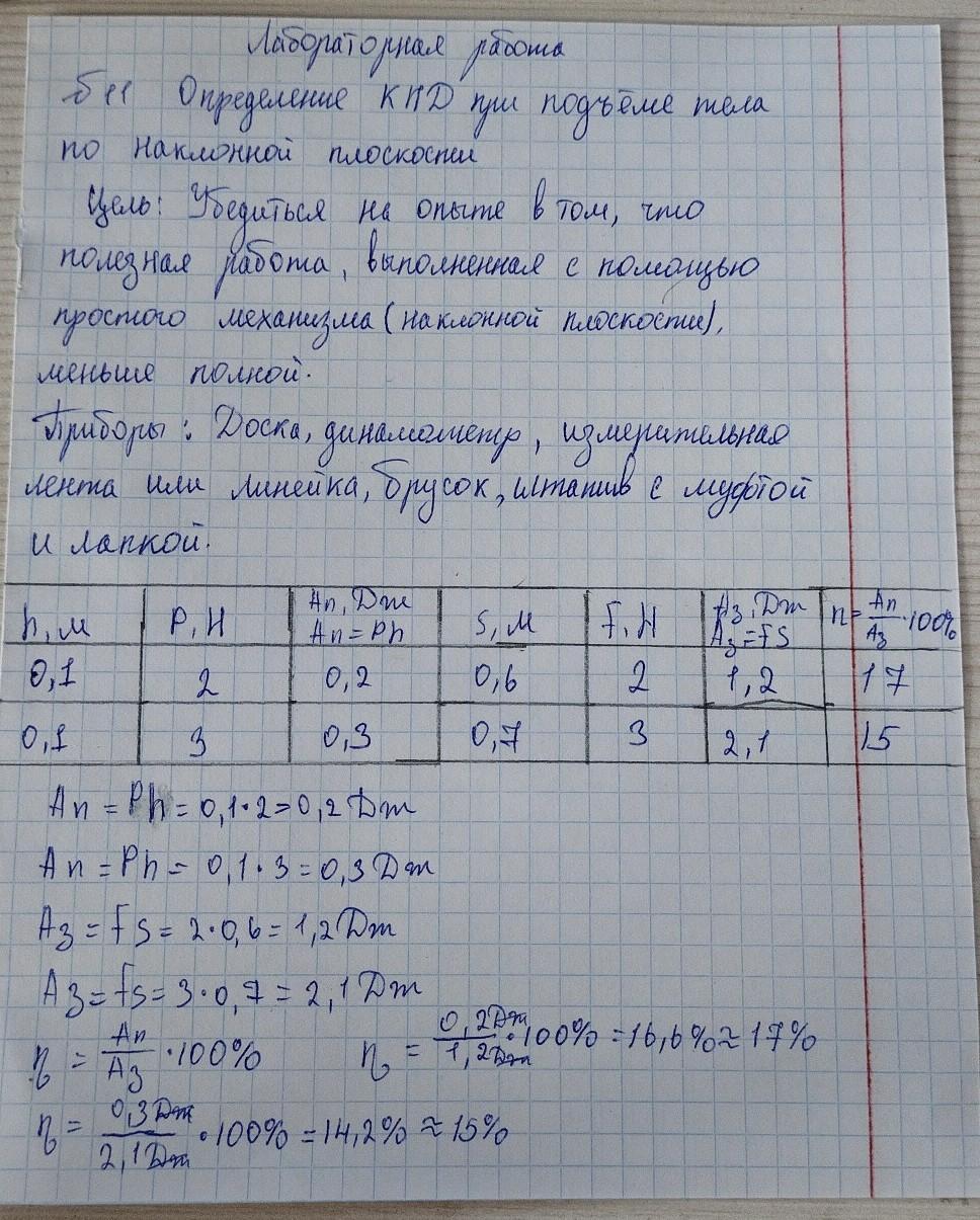 Полезная работа, выполненная с помощью наклонной плоскости, меньше полной работы
