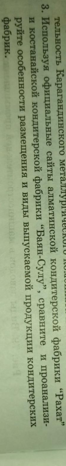 3. Используя официальные сайты алматинской кондитерской фабрики «Рахат» и костанайской кондитерской фабрики “Баян-Сулу”, сравните и проанализи руйте особенности размещения и виды выпускаемой продукции кондитерских фабрик.