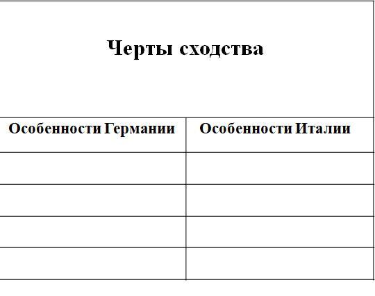1. Германия - крупные города больше торговали с другими странами. 1.Италия Крупные города разбогатели через выгоду с крестоносцами. 2.г. -мелкие и средние дворяне, которые в других странах поддерживали короля, в германии были слишком слабы, чтобы стать опорой центральной власти. 2.и. - наличие крупных городов. Борьба за власть богатых семей, борьба городов с сеньорами, появление комунов. 3.г- упадок власти императоров в 15 веке, потеря боеспособности, неудачи в борьбе. 3. и- италия стала добычей других, более сильных государств.