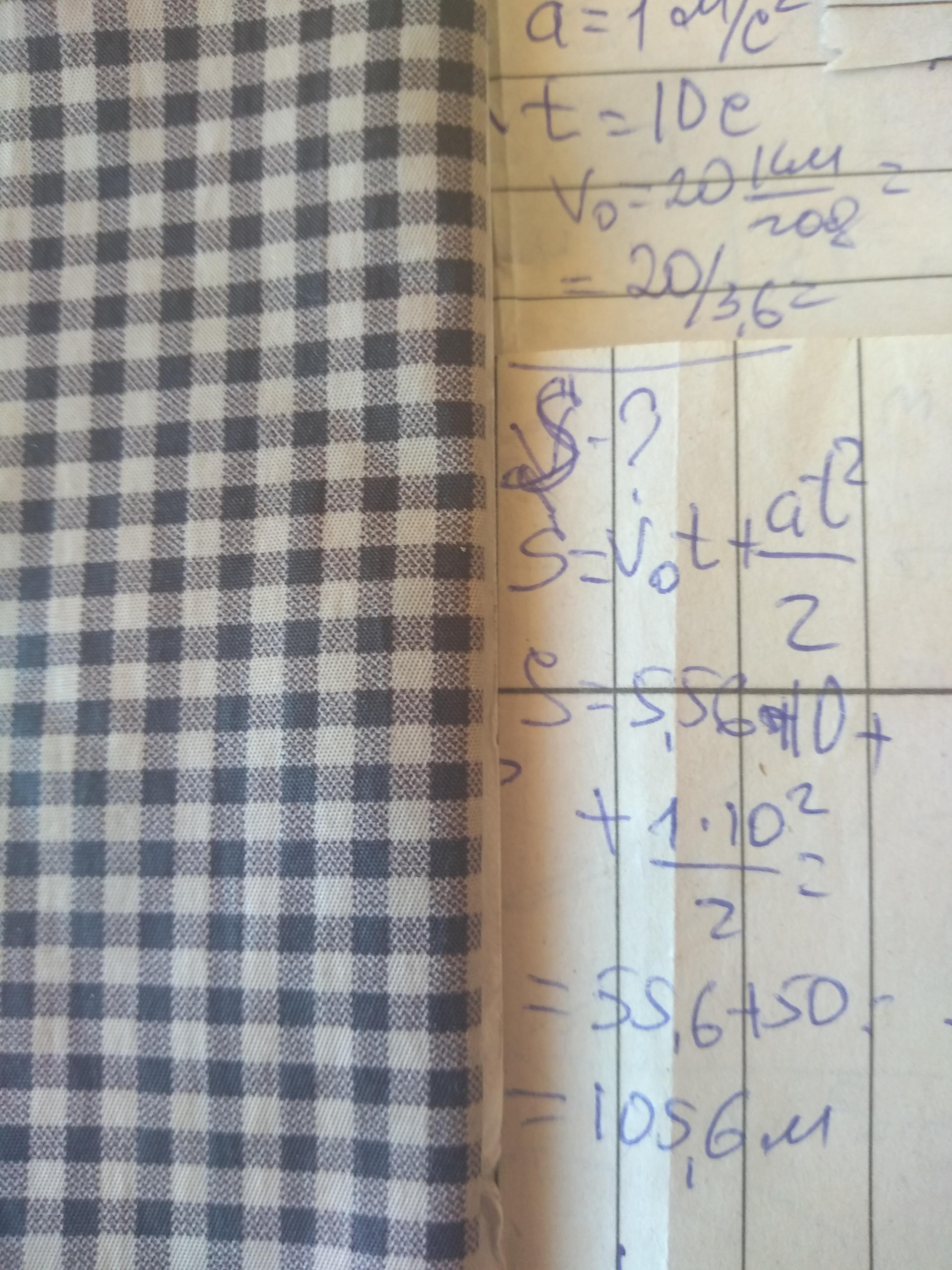 Лижник спустився з гірки за 10 с, рухаючись з постійним прискоренням 1 м/с2 . Визначте довжину гірки, якщо відомо, що на початку спуску швидкість лижника дорівнювала 20 км/год.