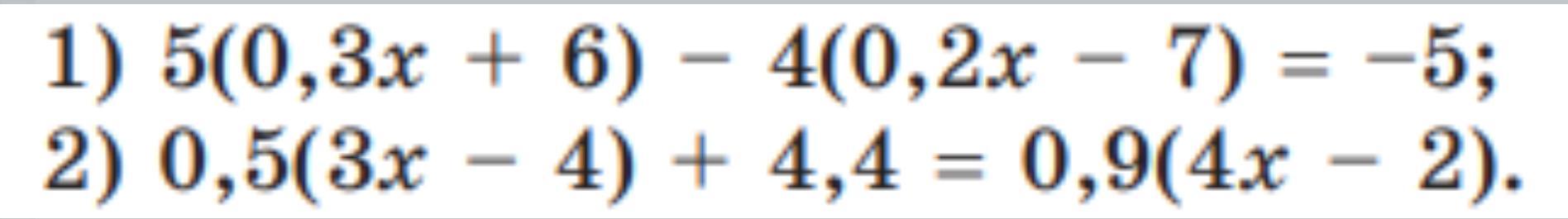 5 (0.3x+6)-4 (0.2x-7)= -5