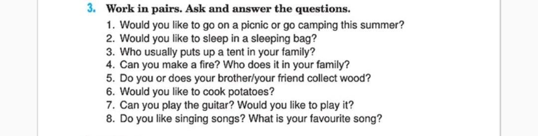 In most of cases, it is doing my father, with the little help of my mother, but at all, our family don't going for a forest or to camps very often