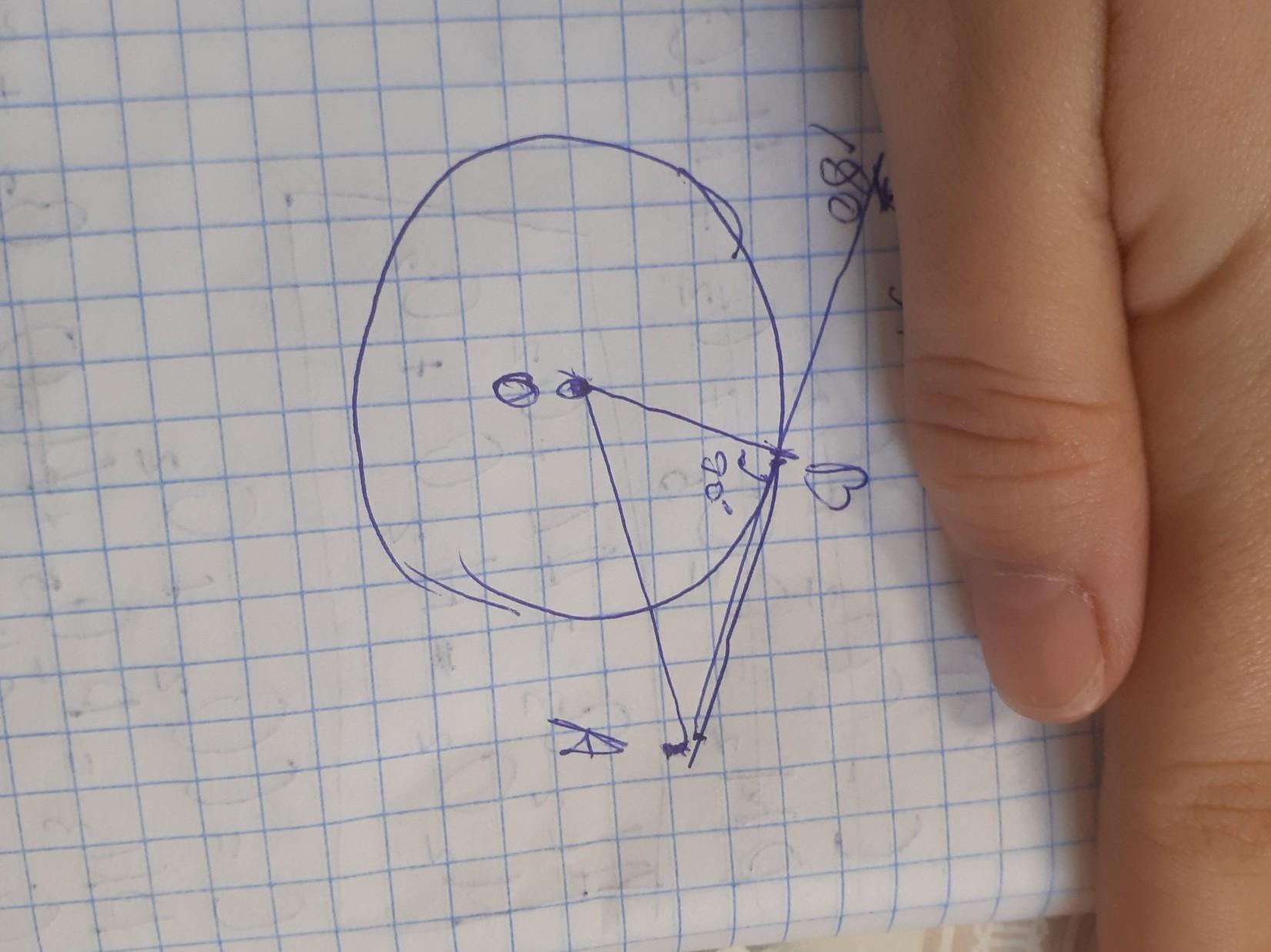 искомая Решение Пусть даны окружность с центром ои точка А вне этой окружности. Допустим, что задача решена и AB касательная (рис. 223). Так как прямая АВ перпендикулярна к радиусу OB, то решение задачи сводится к построению точки В окружности, для которой ZABO прямой. Эту точку можно построить следующим образом: проводим отрезок ОА и стро- им его середину О. Затем проводим окружность сцентром в точке 0, радиуса О.А. Эта окруж- ность пересекает данную окружность в двух точках: В и В1. Прямые AB и АВ, касательные, как ABOB и AB11ОВ. Действи- тельно, углы ABO и AB10, вписан- A ные в окружность сцентром 01, опи- раются на полуокружности, поэтому В. они прямые. Очевидно, задача имеет два решения. Рис. 223 B искомые так О 0, 1 172 Глава VII