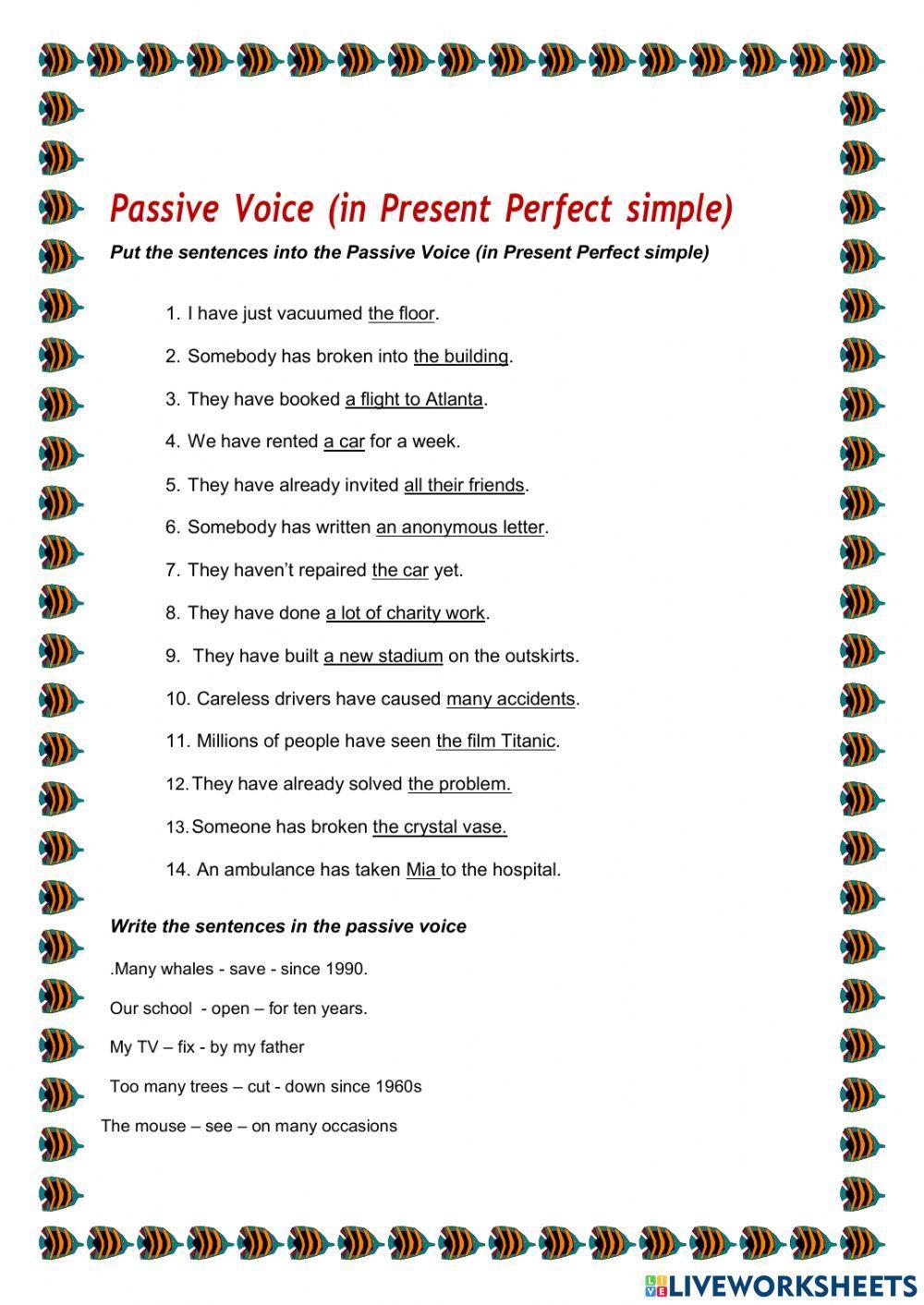 7. The car hasn't been repaired by them yet. 8. A lot of charity work has been done by them. 9. A new stadium has been built by them on the outskirts.10. Many accidents have been caused by careless drivers 11. The film Titanic has been seen by millions of people. 12 The problem had been already solved by them. 13. The crystal vase has been broken by somebody.