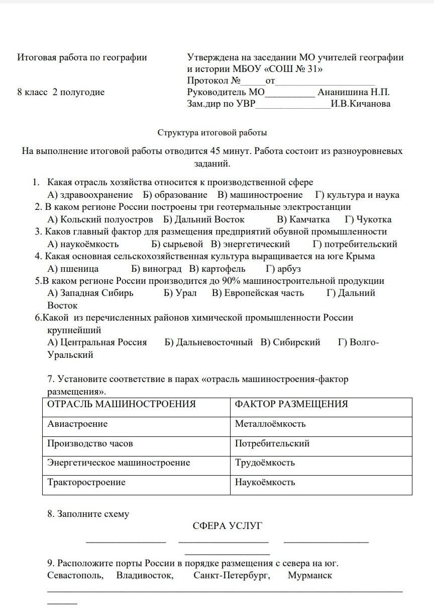 9) 4) Мурманск 3) Санкт Петербург 2) Владивосток 1) Севастополь