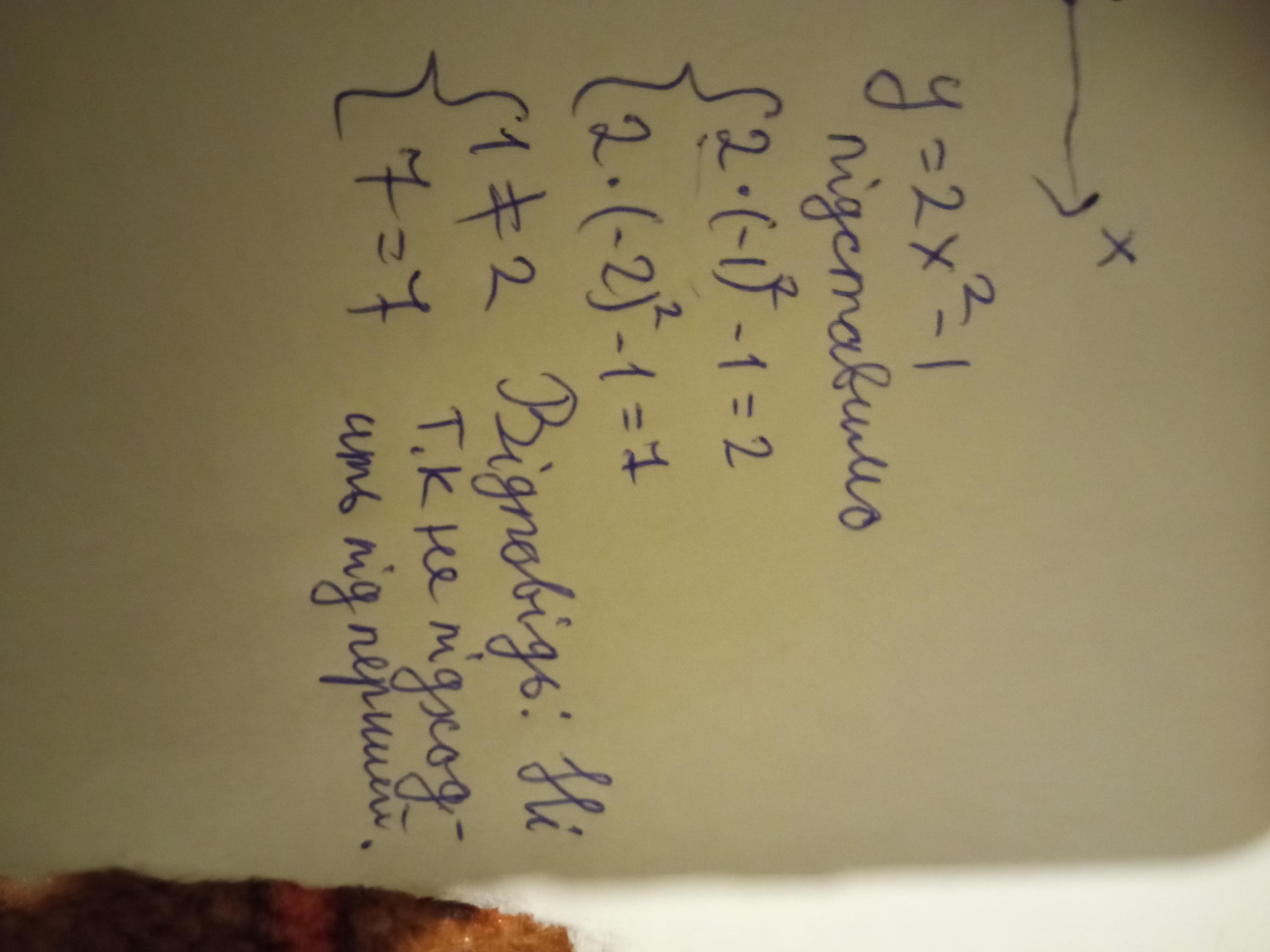 Чи проходить графік функції y=2x2-1 через точки А(-1;2) B(-2;7)
