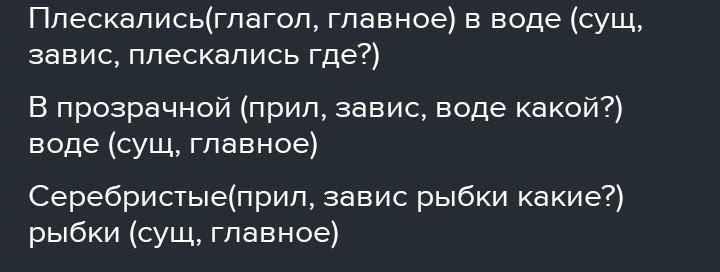 помогите паж Выпиши из предложения словосочетания глагол + существительное укажи в словосочетания главные и зависимые слова 1) В прозрачной воде озера плескались серебряные рыбки СРОЧНА НАДО! !! !!! :-! :-! :-! :-! :-! :-! :-! :-! :-! :-!