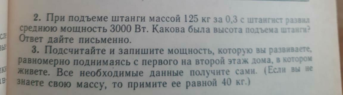 3.А вот Свою мощность считайте Сами. Вам нужны:расстояние между этажами(в метрах) и время, за которое Вы преодолеваете это расстояние(в секундах). Массу можете взять из задачи или свою. А далее воспользуйтесь формулой: