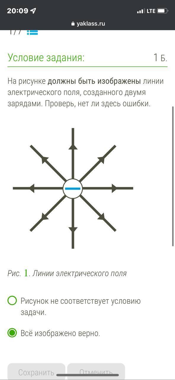 На рисунке должны быть изображены линии электрического поля, созданные двумя зарядами. Проверь, нет ли здесь ошибки. Срочно!