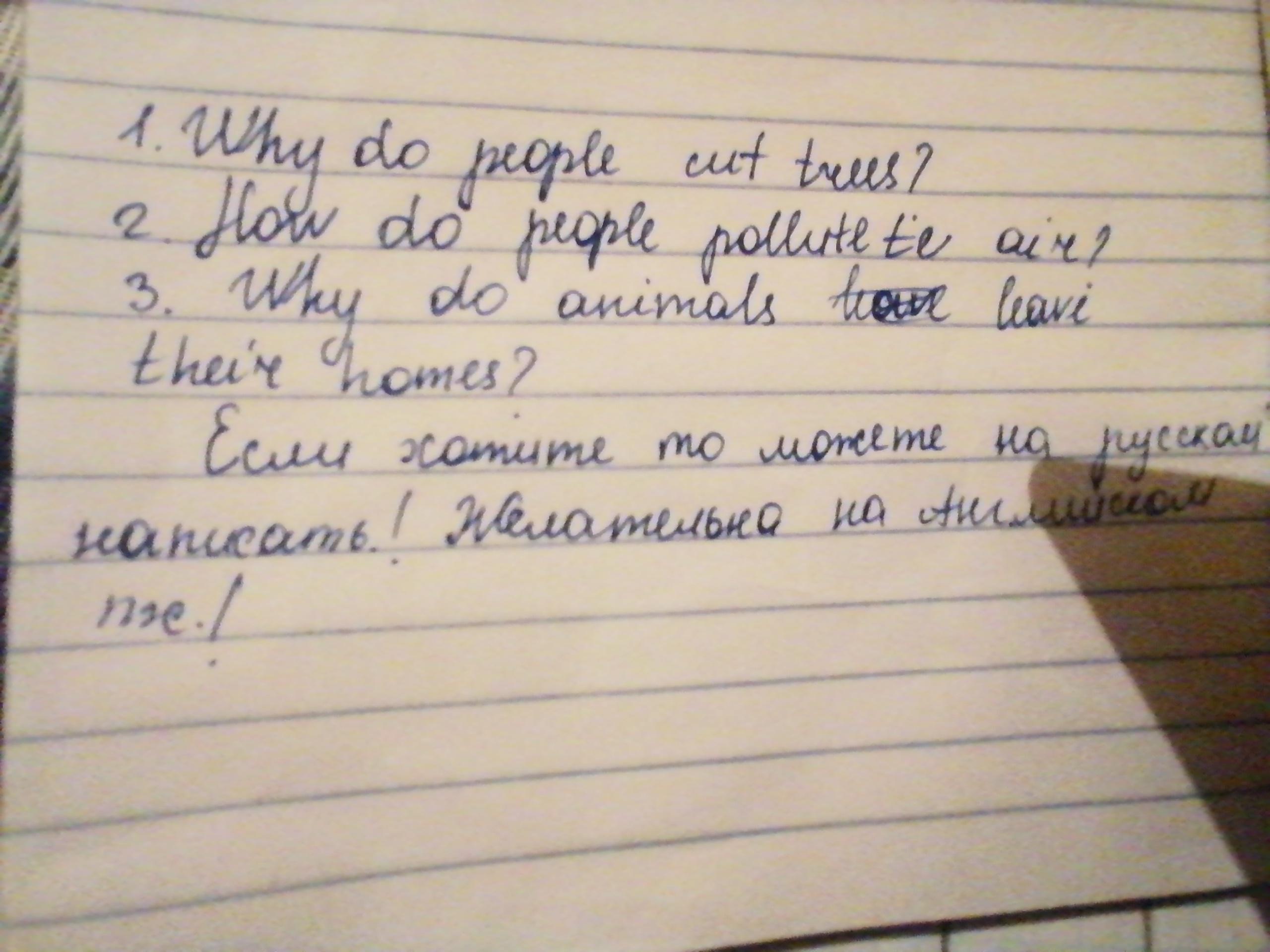 1. People cut trees because they need space to build new houses фтв roads. - Люди срубают деревья, потому что им нужна площадь для строительства новых домов и дорог.