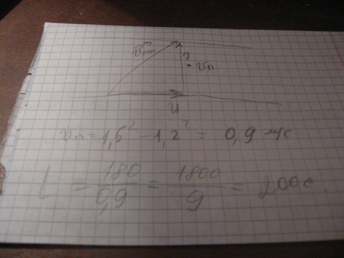 неверное решение, так как пловец плыл не вдоль реки, а перпендикулярно!!!!