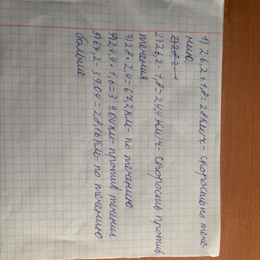 Скорость катера 26,2 км/ч, скорость течения 1,8 км/ч. По течению 2,4 часа против течения 1,6 часа.