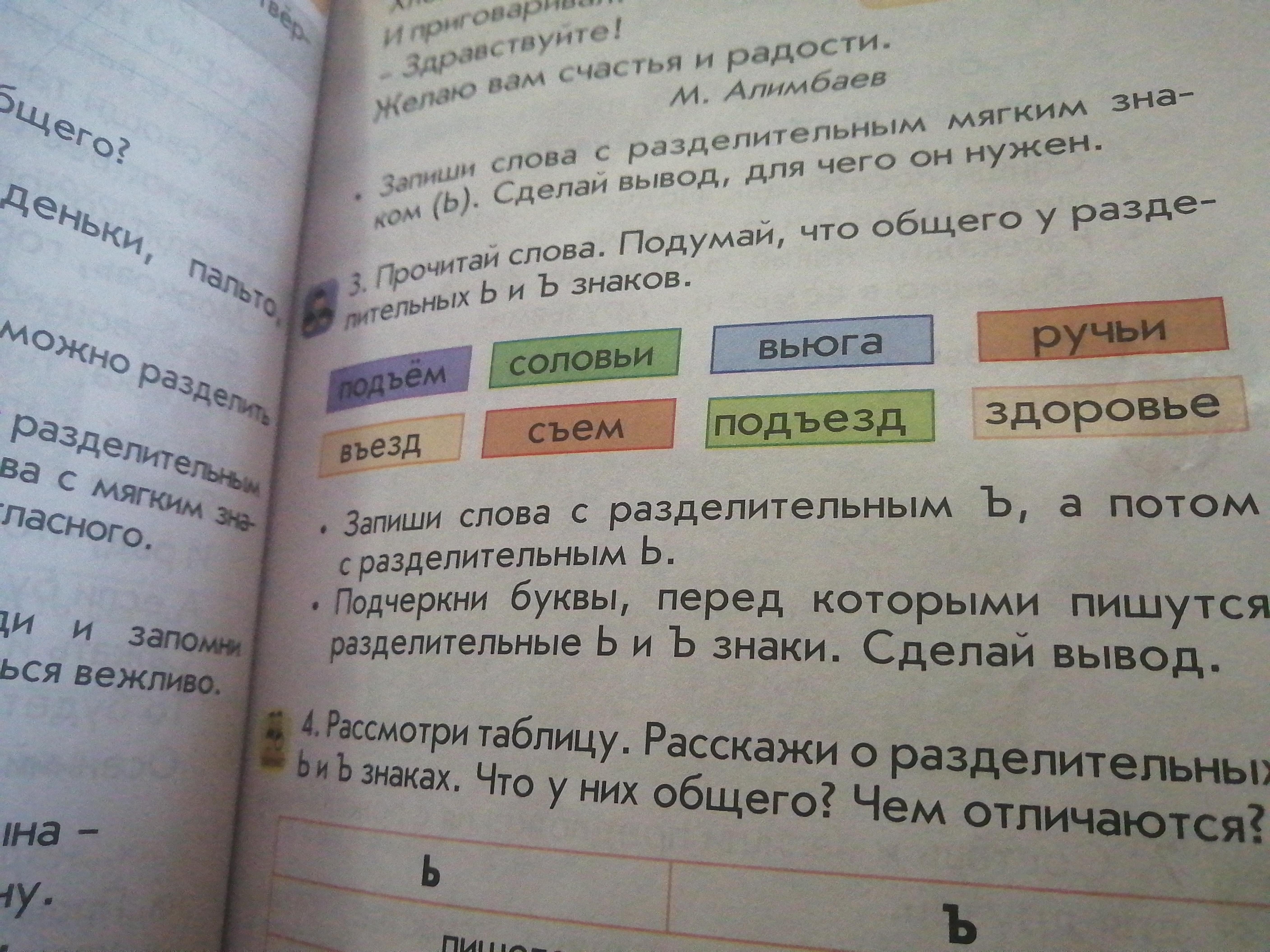 Прочитай слова подумай что общего у разделительным ь и ъзнаков