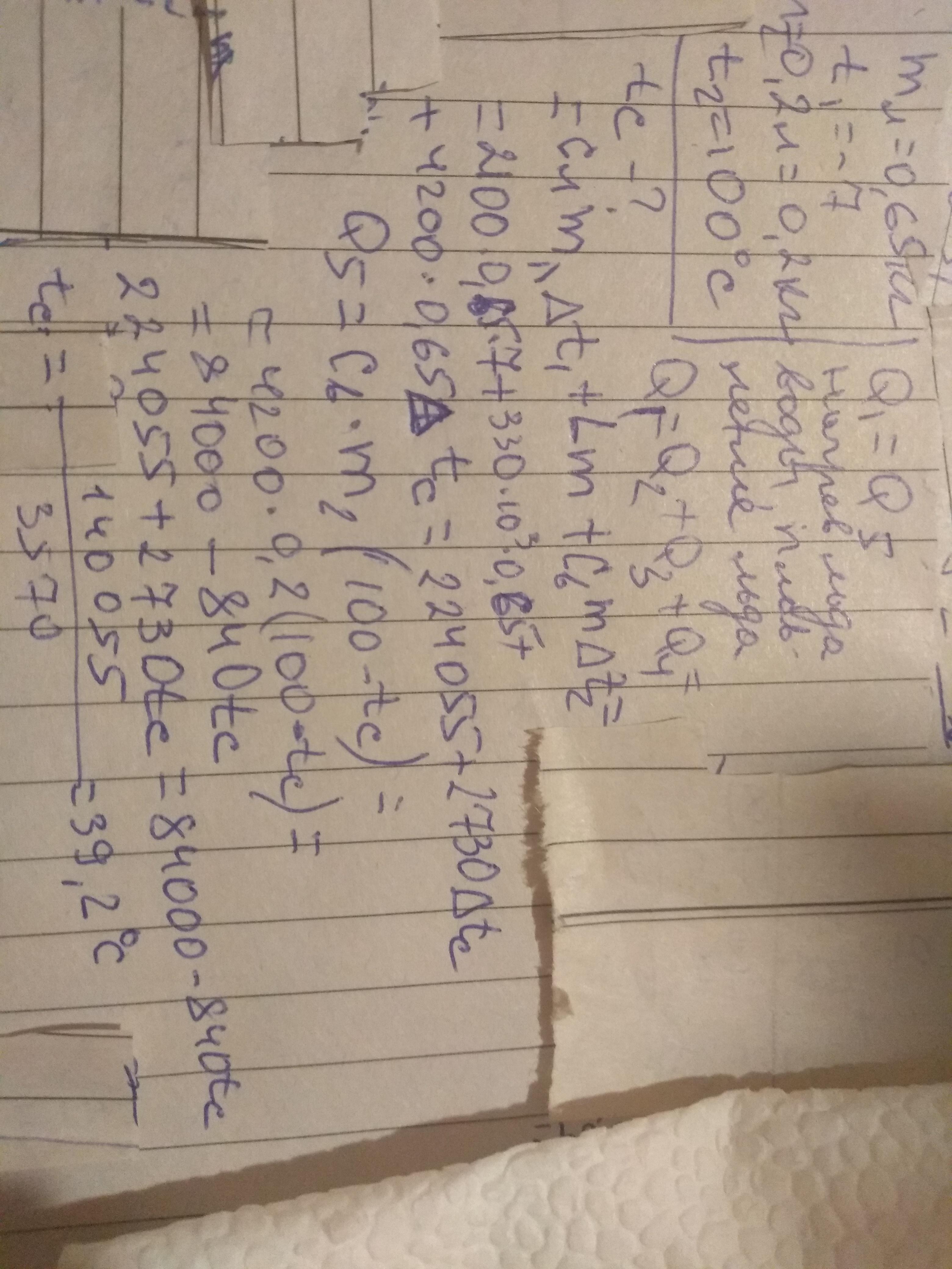 В калориметр, содержащий 650 г льда при температуре –7 ºС, налили 0,2 л кипятка при температуре 100 ºС. Найти температуру, которая установится в калориметре после завершения теплообмена. Удельная теплоемкость воды 4200 Дж/(кг·ºС), удельная теплоемкость льда 2100 Дж/(кг·ºС), удельная теплота плавления льда 330 кДж/кг. Ответ выразить в ºС, округлив до целого значения.