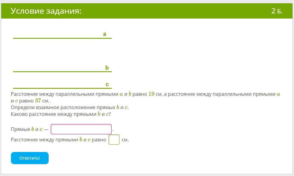 b и с параллельны; от а до с - 37 см, от а до b - 19, значит от b до с 37-19 = 18 см