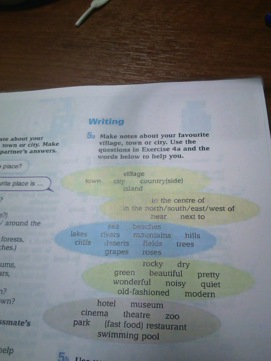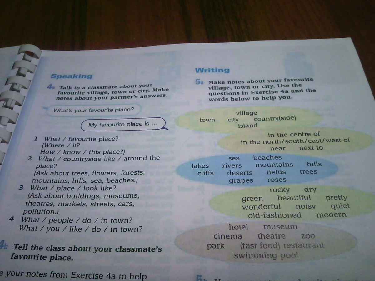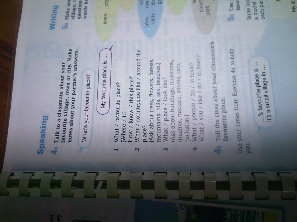 Тебе нужно написать заметку о любимом месте.Например о Москве(на знаю где ты живешь)My favourite place is Moscow.It is a large modern city.There are many buildings,streets and cars in it.Many people live there.They work and have a rest in the city.They can go to the zoo,restaurant,museum or swimming poo..