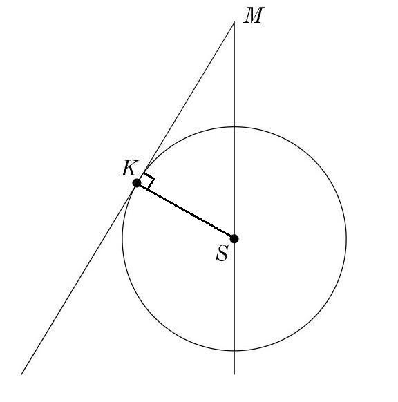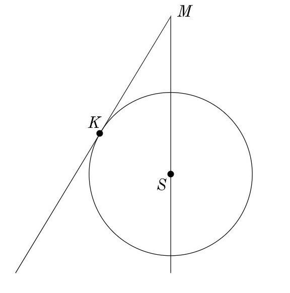 MKMK — касательная к окружности. Определи значение радиуса окружности, если MK = 48, MS= 50