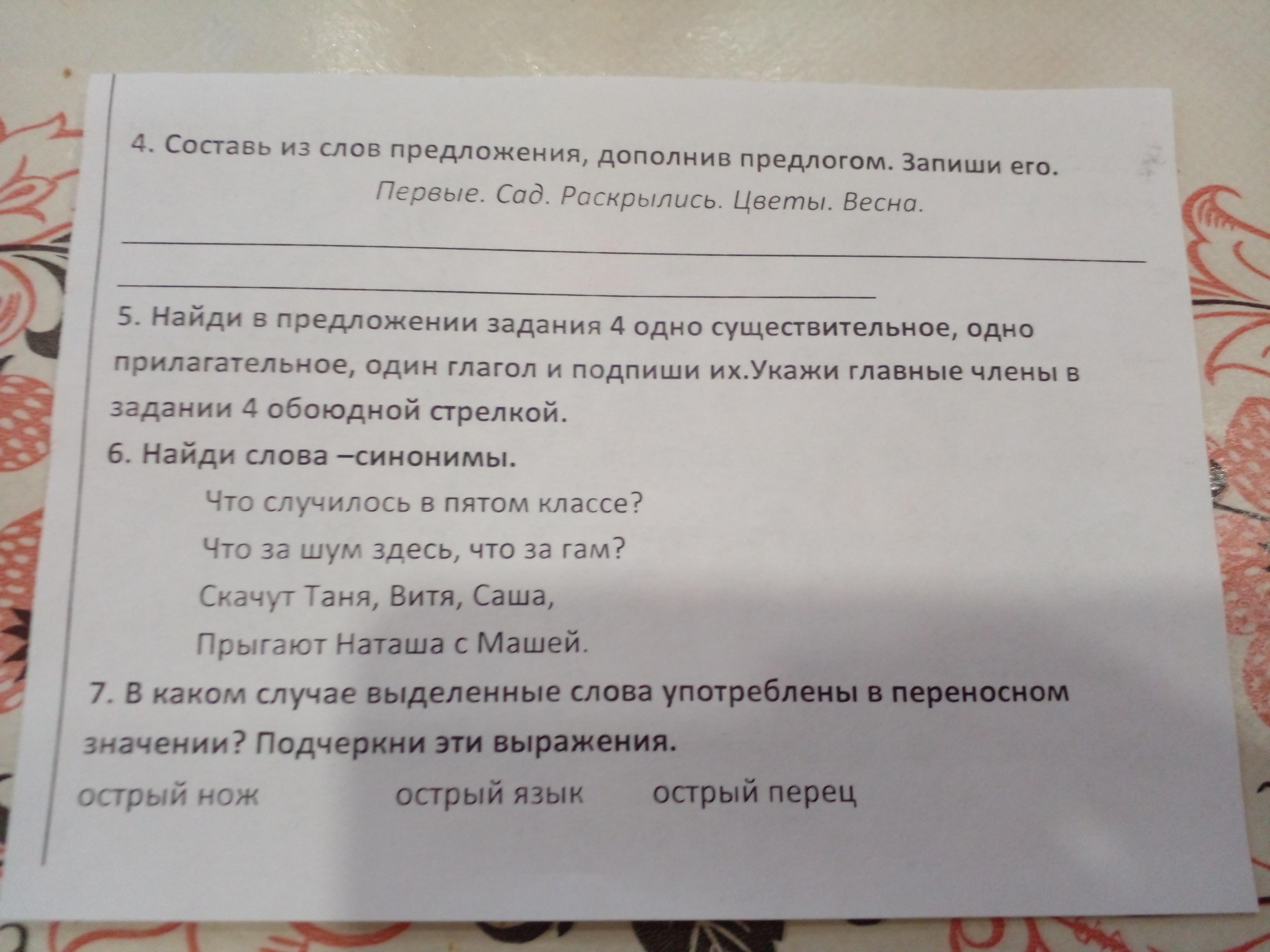 5.Цветы-существительное, раскрылись-глагол,первые-прилагательное. Грамматическая основа: цветы раскрылись.
