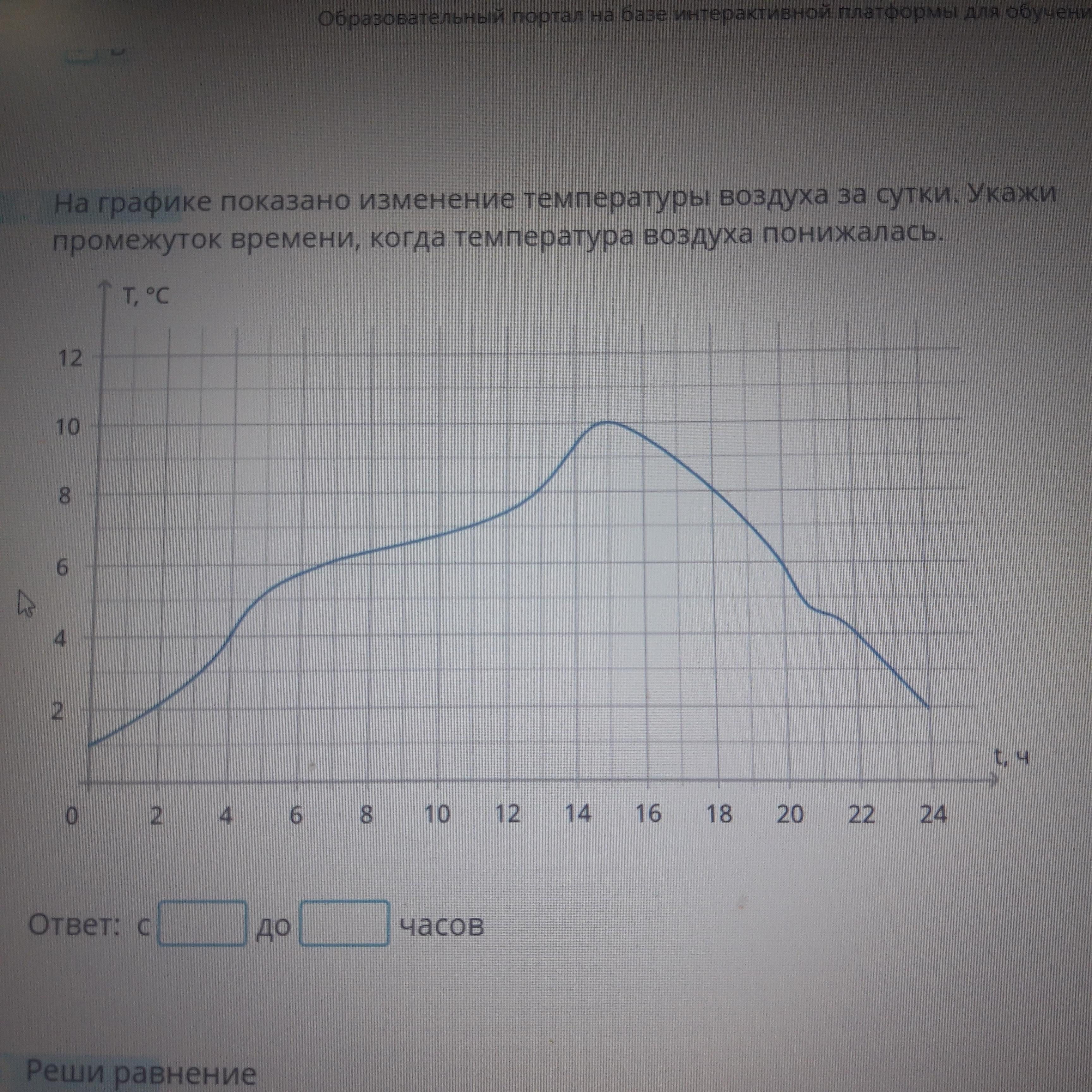 На графике показано изменение температуры воздуха за сутки. Укажи промежуток времени, когда температура воздуха Понижалась.