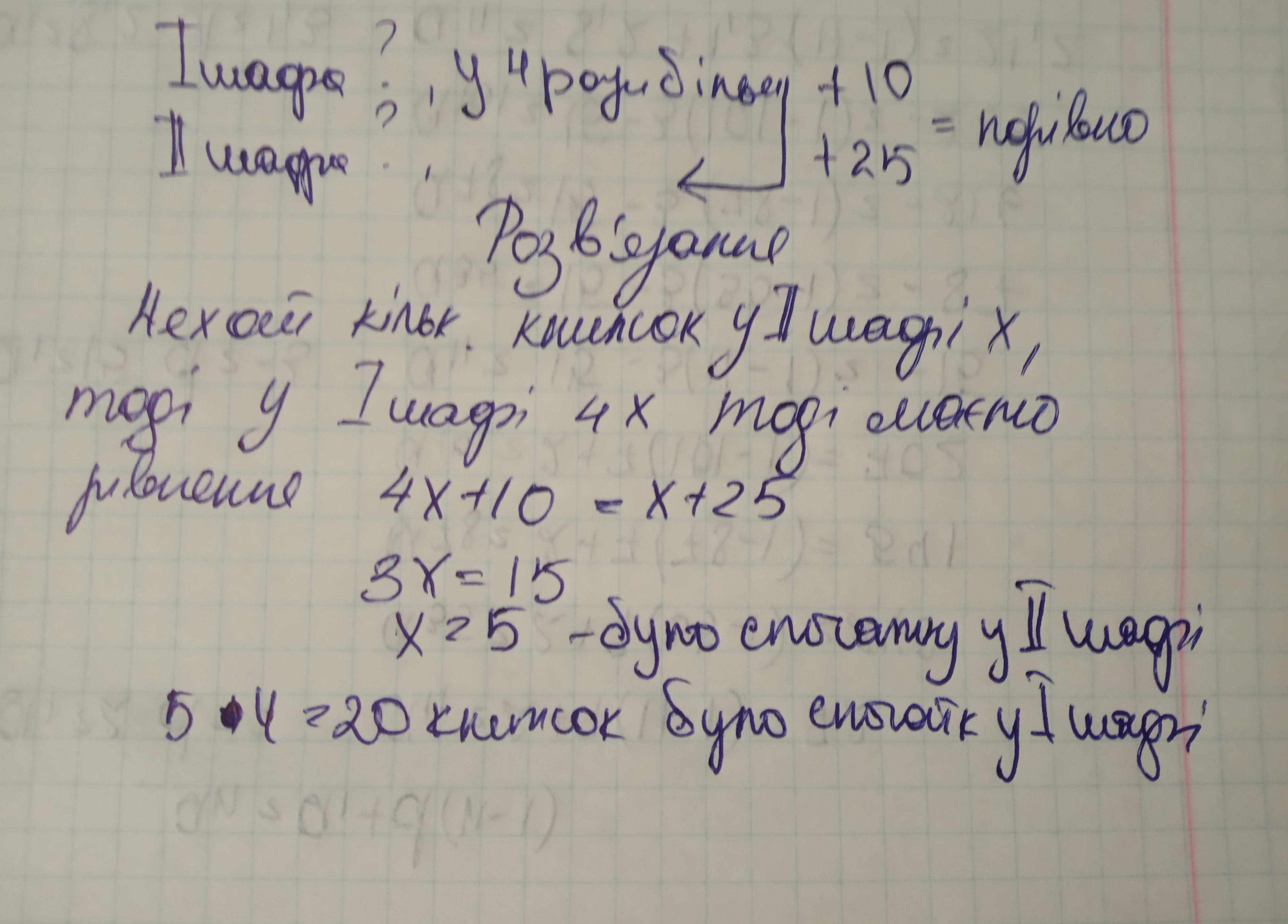 Коли в першу шафу поклали 10 книжок, а в другу 25, то в обох