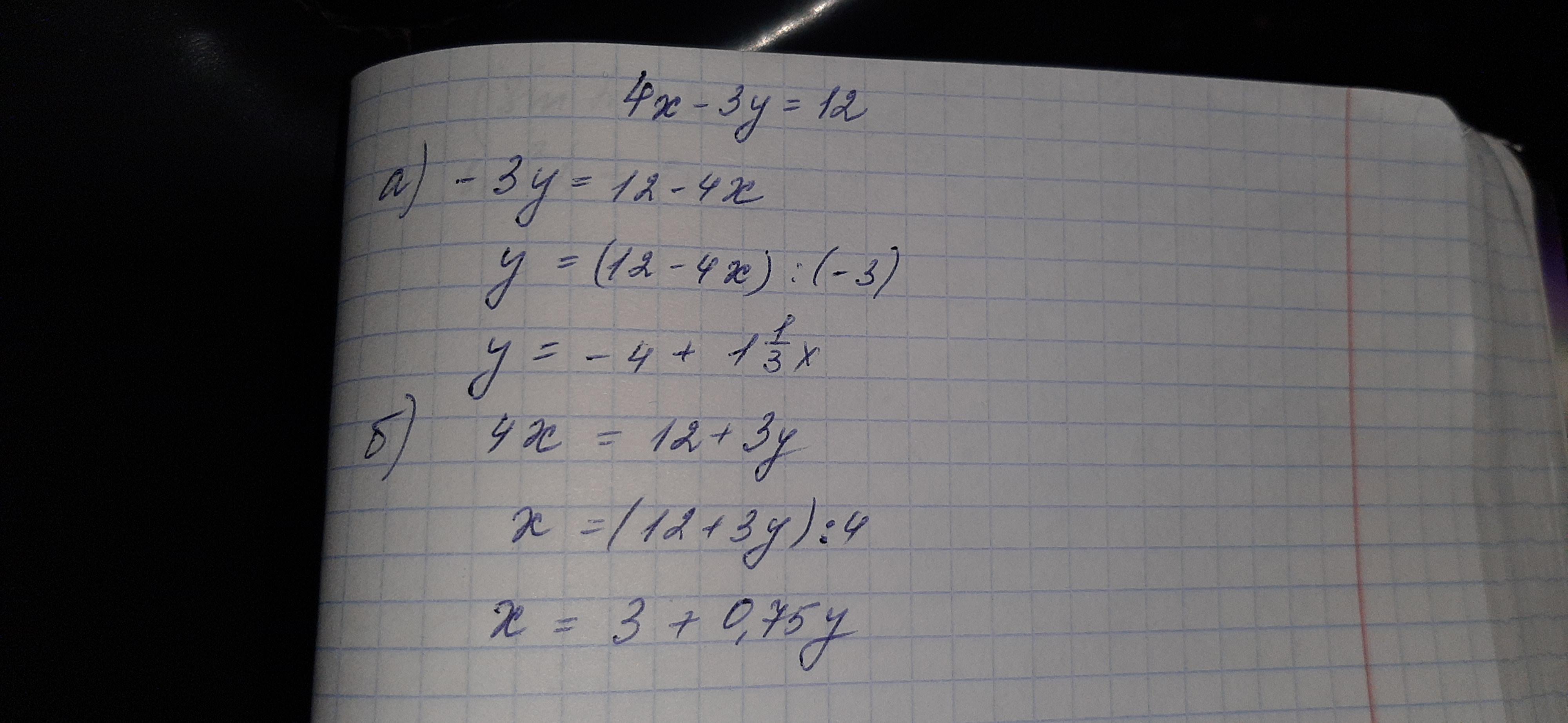 или 4х представить как 4у и получится уравнение 4у-3у=12 у=12 и 3у представить как 3х и получается 4х-3х=12 х=12. подставляем х и у