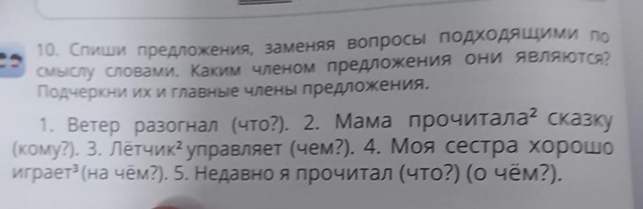 Спиши предложения заменяя вопросы подходящими по смыслу словами Каким членом предложения они являются подчеркни их и главными членами предложения