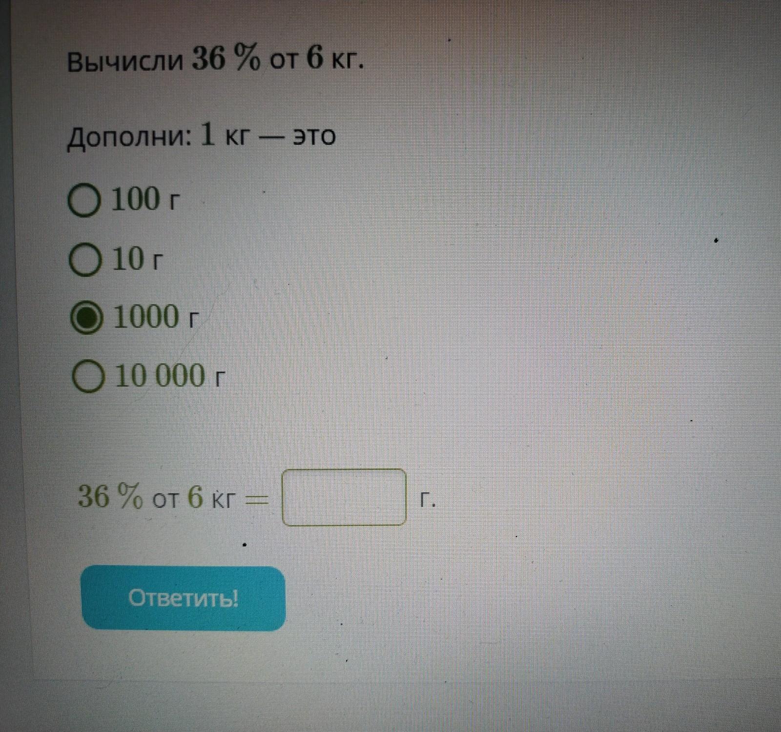 Но ответ нужно дать в граммах, поэтому умножим на 1000, т.к 1 кг.=1000 г. .