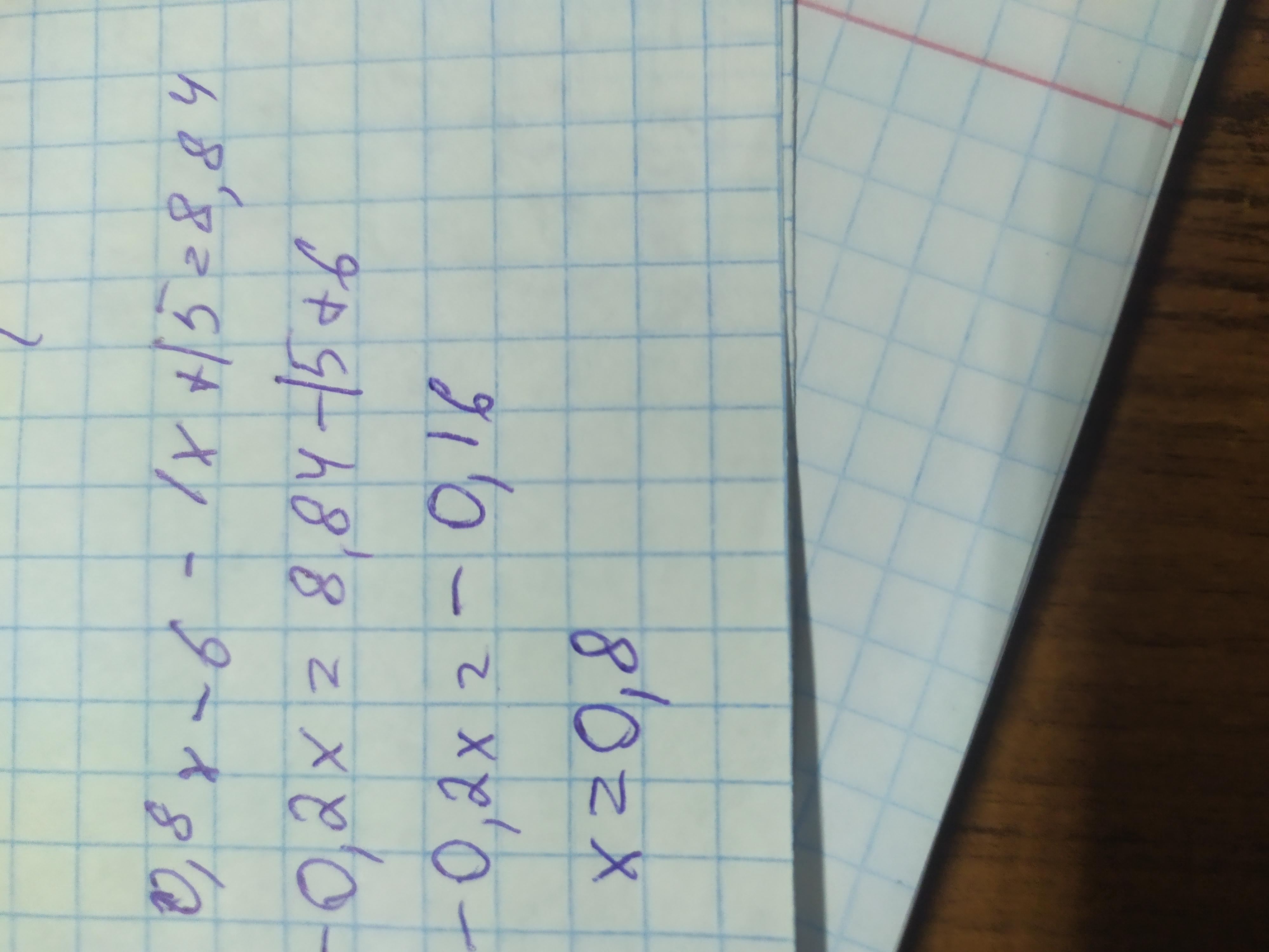 Помогите решить пожалуйста 2*(0.4x-3)-5*(0.2x-3)=8.84