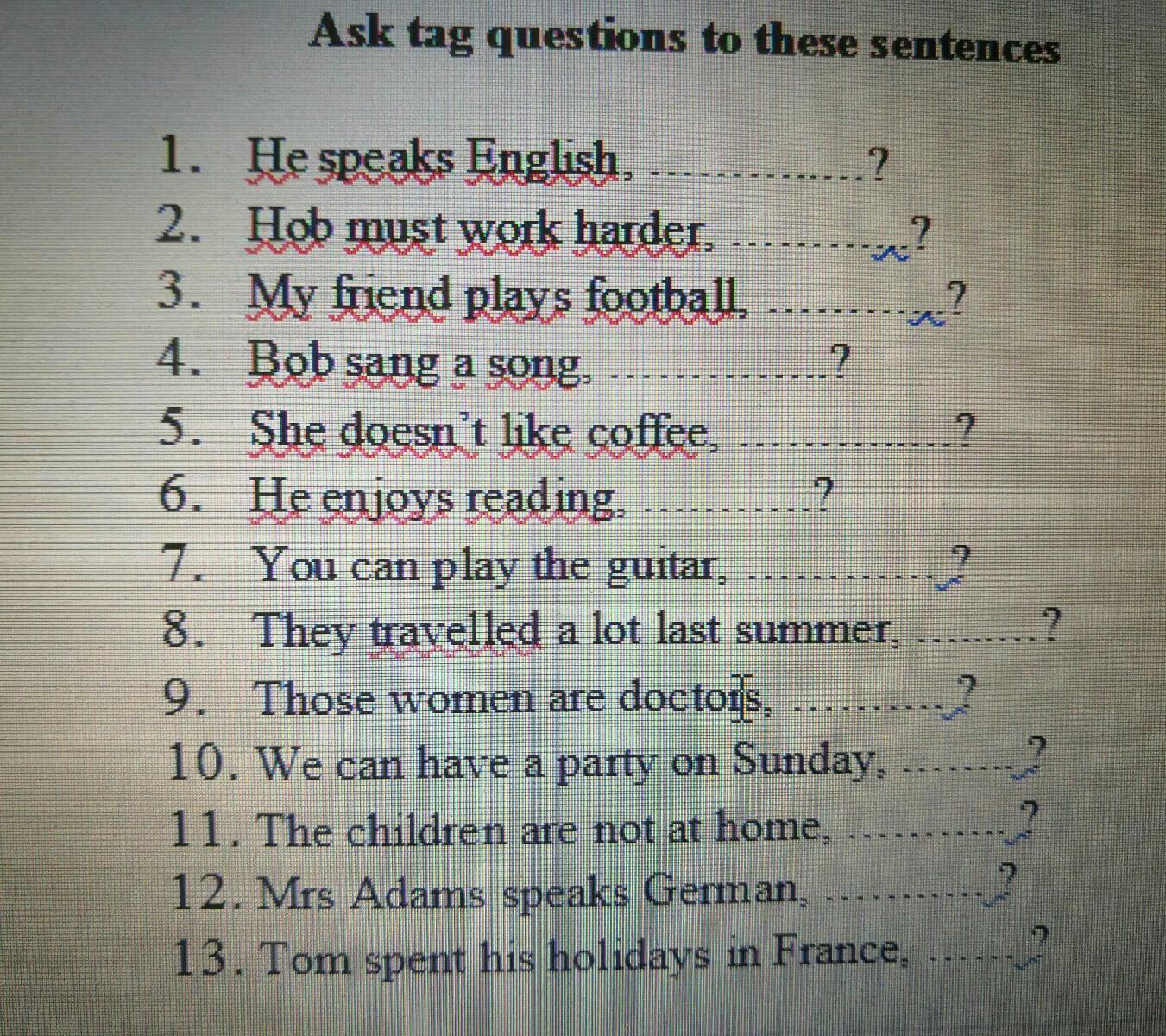 Выполнить упражнения (фото) задать разделительные вопросы к предложениям.