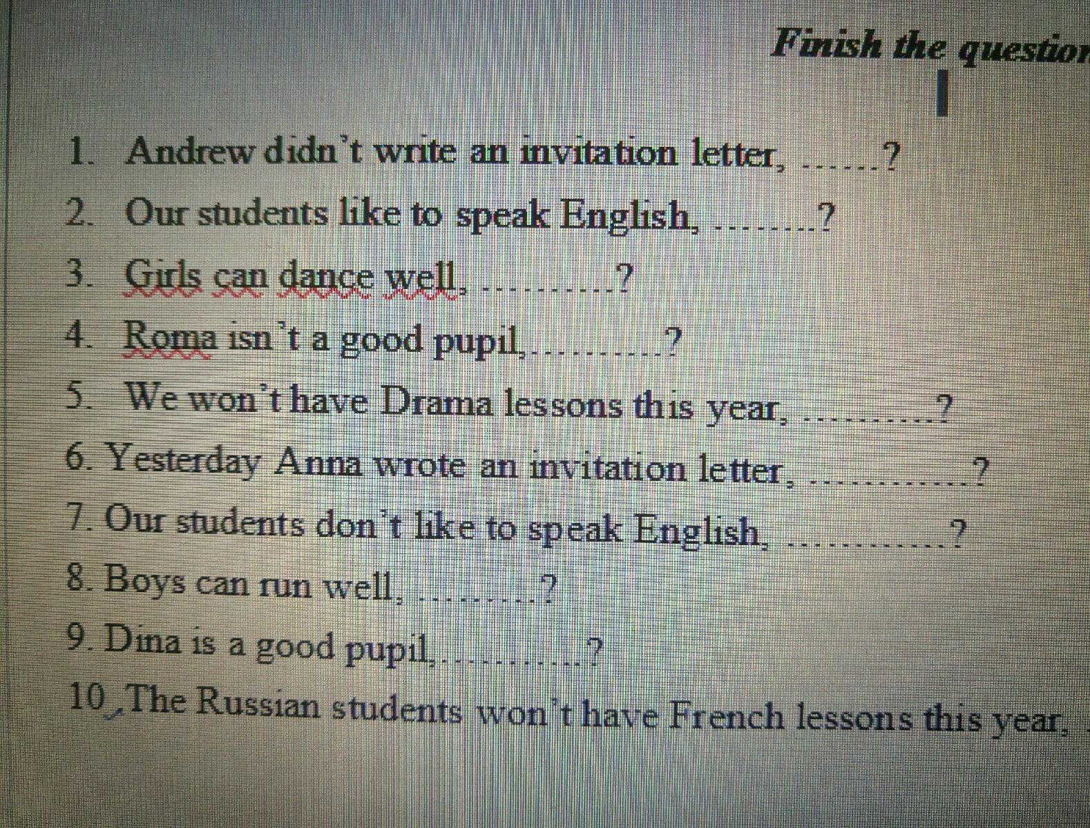 Помогите пожалуйста Выполнить упражнения (фото) задать разделительные вопросы к предложениям.