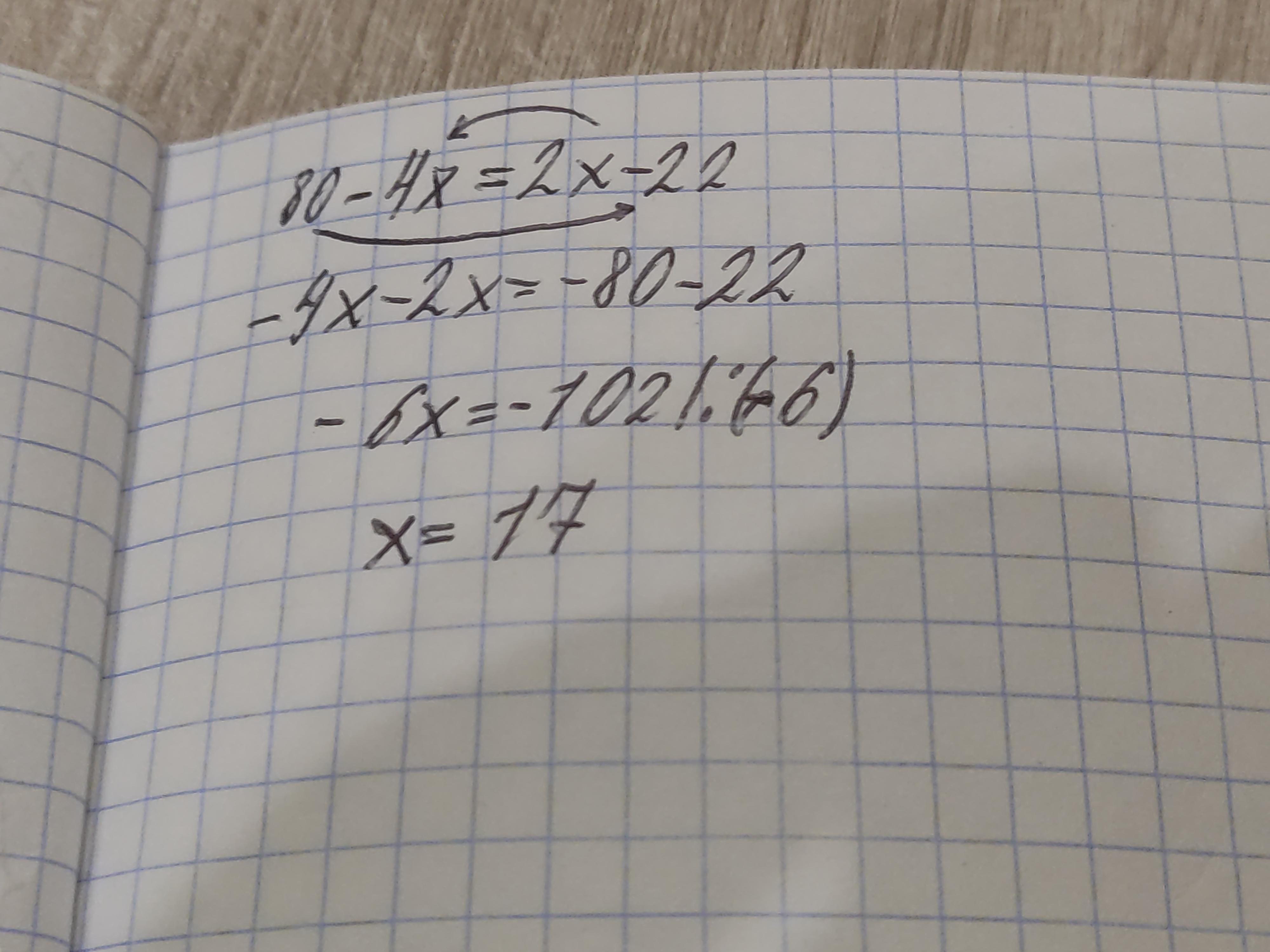 -4x-2x=-22 -80