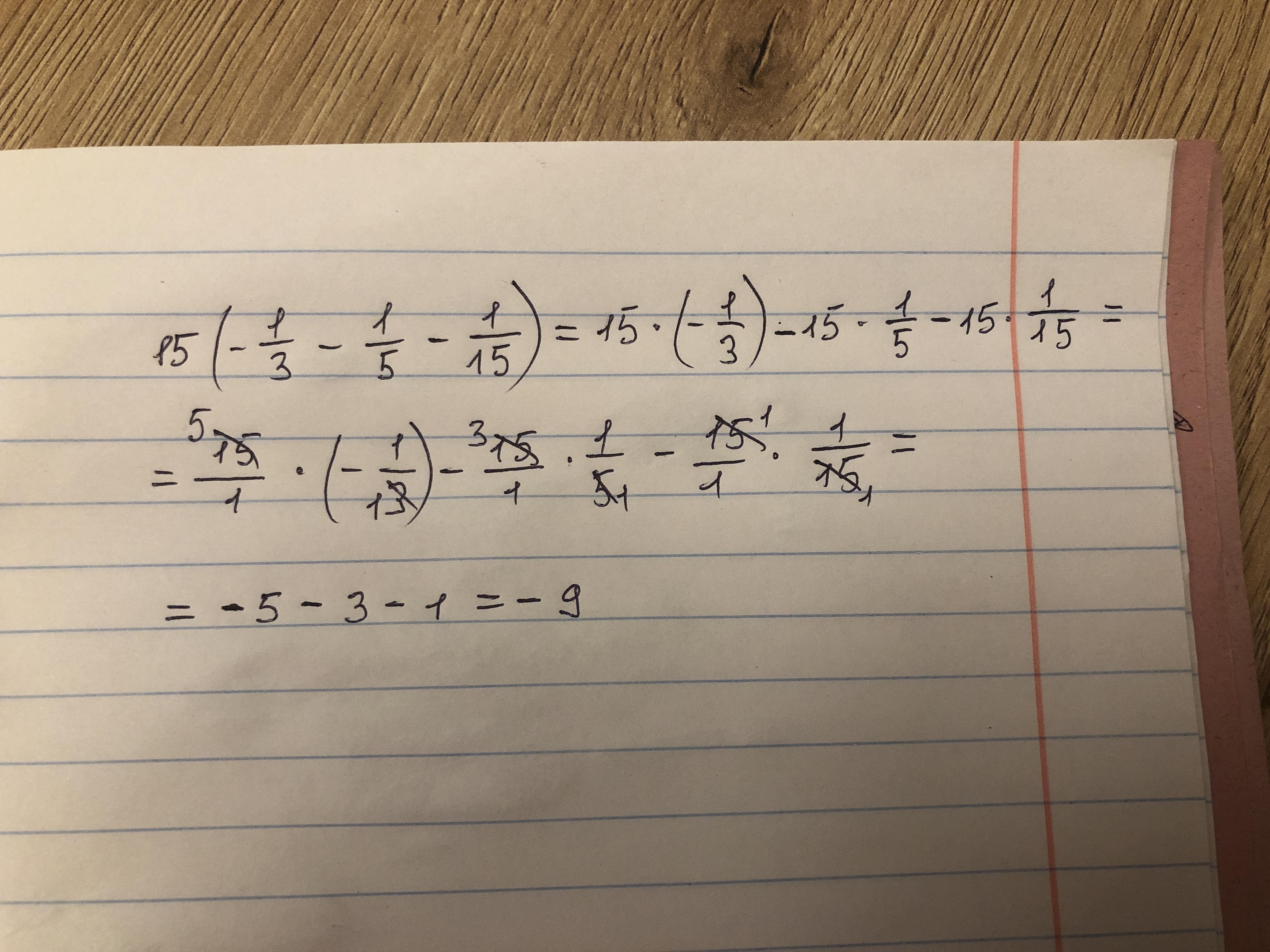 15*(-1/3-1/5-1/15)=15*(-5/15-3/15-1/15)=15*(-9/15)= -9