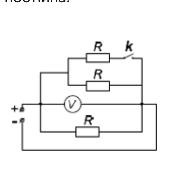 Як зміняться покази вольтметра, якщо замкнути ключ К? Напруга джерела постійна. *