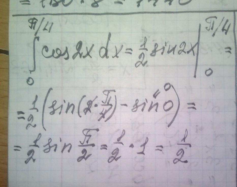 ПОДСТАВИМ ПРЕДЕЛЫ ИНТЕГРИРОВАНИЯ ОТ 0 ДО pi/4 И ИСПОЛЬЗУЕМ ПРАВИЛО НЬЮТОНА-ЛЕЙБНИЦА: