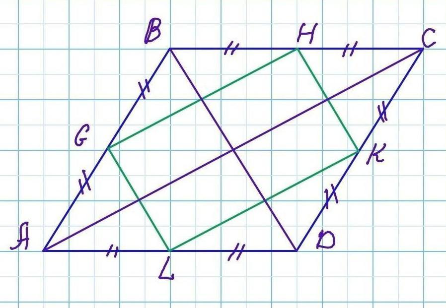 Стороны четырехугольника GHKL - средние линии треугольников.