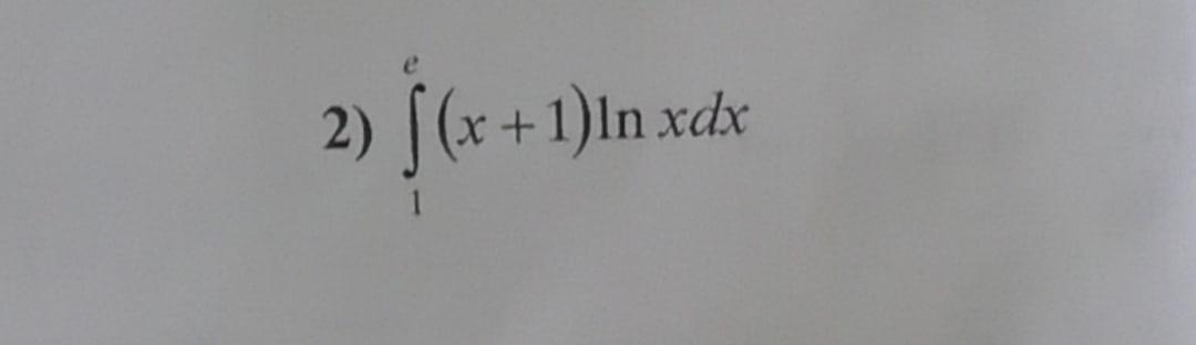Обозначим искомый интеграл через I. По формуле Ньютона-Лейбница, I=F(e)-F(1), где F(x)=∫(x+1)*ln(x)*dx. Для нахождения F(x) применим метод "по частям". Пусть u=ln(x), dv=(x+1)*dx ⇒ du=dx/x, v=1/2*x²+x ⇒ F(x)=u*v-∫v*du=1/2*x²*ln(x)+x*ln(x)-1/2*∫x*dx-∫dx=1/2*x²*ln(x)+x*ln(x)-1/4*x²- x. Отсюда I=1/2*e²+e-1/4*e²-e-( -1/4-1)=1/4*e²+5/4.