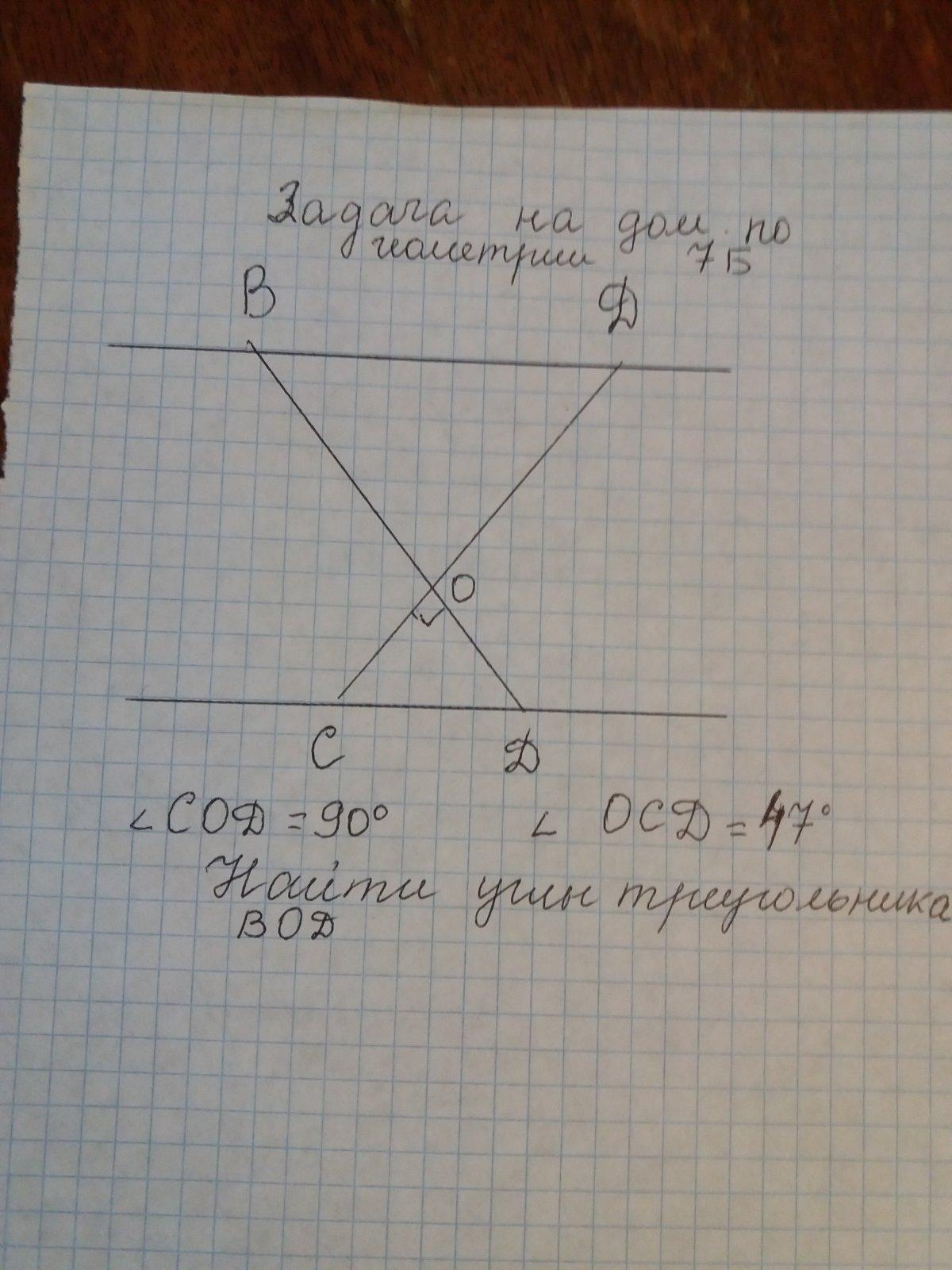 <ОDB=<OCD=47 градусов как накрест лежащие