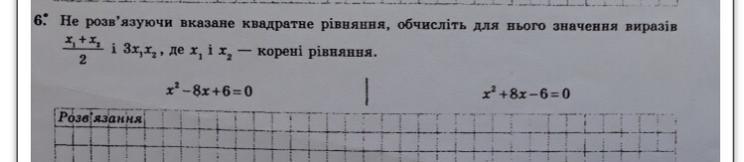 х² - 8х + 6 = 0 х² + 8х - 6 = 0