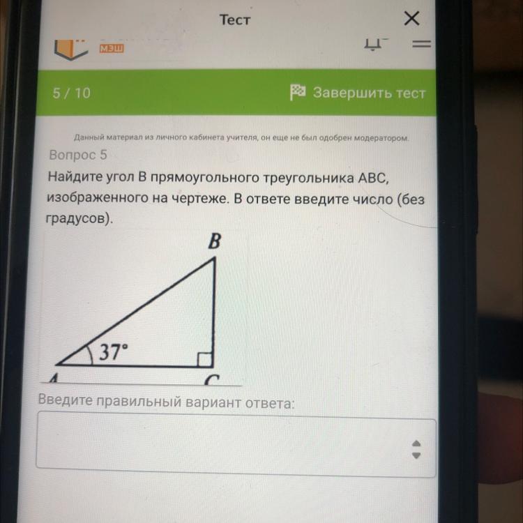 ∠В = 180° - (37° + 90°) = 180° - 127° = 53°