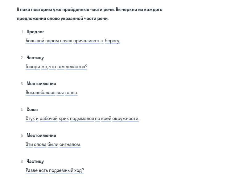 1 к 2 же 3 вся 4 и 5 эти 6 есть