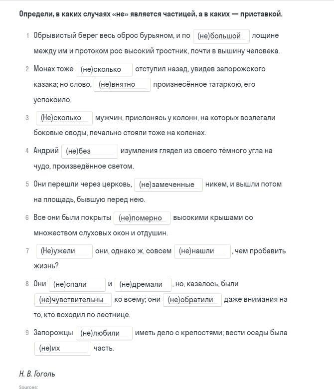 Задание 2: небольшой, несколько, невнятно, несколько, не без, не замеченные, непомерно, неужели, не нашли, не спали, не дремали, нечувствительны, не обратили, не любили, не их