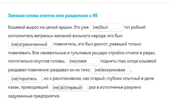 Задание 4: не был, неограниченный, не смея, не вскрикивая, не торпясь, не в первый